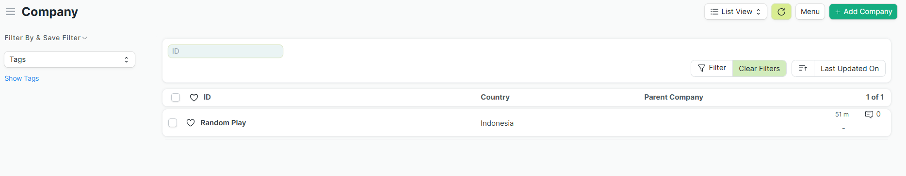 Pada halaman daftar Company, klik Company tempat anda ingin mengaktifkan fitur.