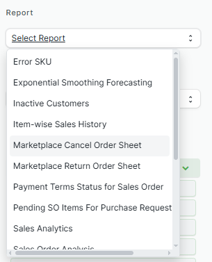 Pada sidebar, tekan Select Report, kemudian pilih Marketplace Return Order Sheet.