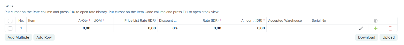 Isi Item Code dan Item Name sesuai kebutuhan.