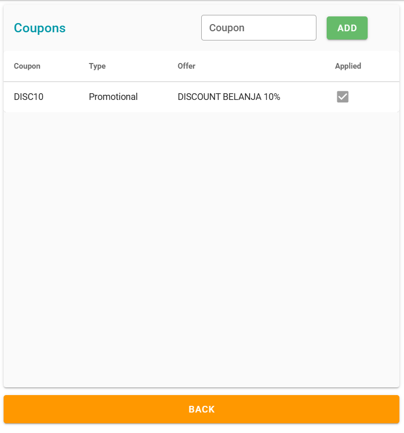 Masukkan Coupon Code pada kolom Coupon, lalu Klik tombol ADD.
