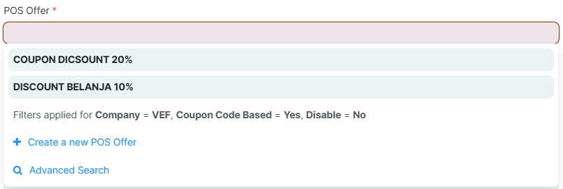 Jika masih kosong, Anda perlu membuat POS Offer terlebih dahulu dengan mengaktifkan opsi Coupon Code Based dan Auto Apply karena Coupon itu bersifat auto aktif.