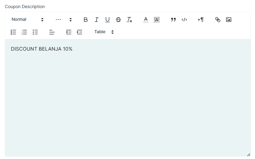 Coupon Description: Penjelasan atau keterangan tambahan mengenai coupon.