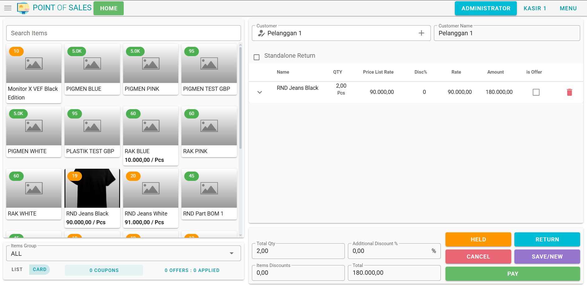 Pilih atau isi Customer dan tambahkan Items seperti biasa.
